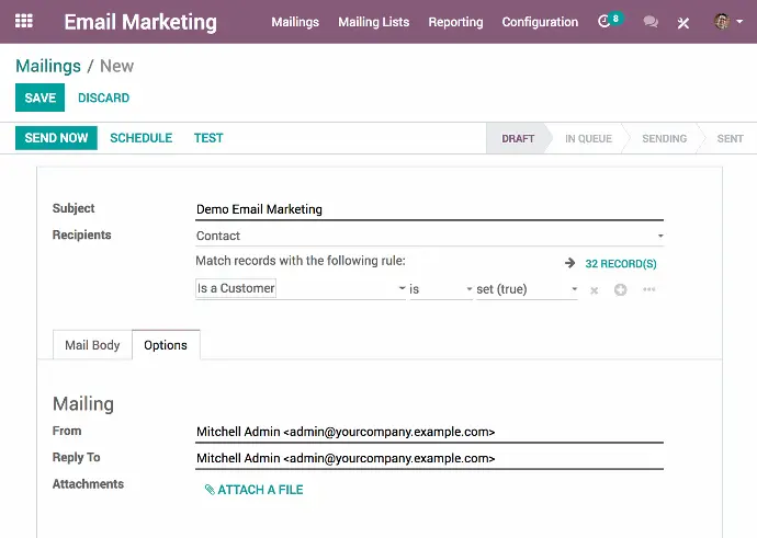 Odoo Email Marketing helps anyone create professional emails in seconds, and delivers them to the right audience - at the perfect time!