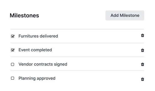 Track major progress points that must be reached to achieve success.