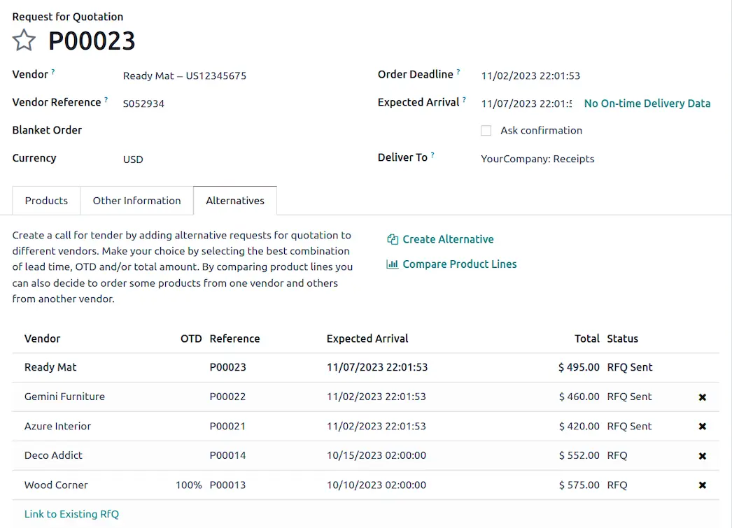 Optimize procurement with customizable and automated purchase agreements. Secure the best prices with alternative RFQs, compare product lines, and streamline recurring orders with blanket orders.